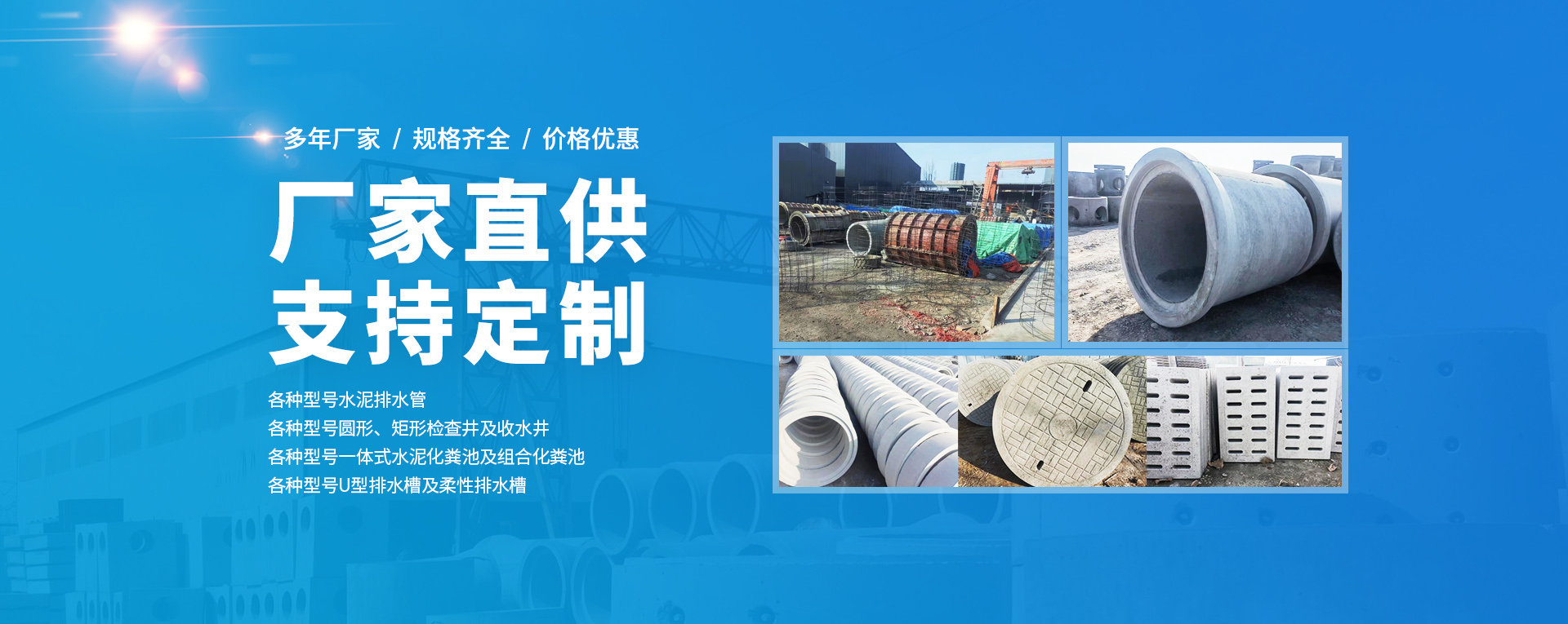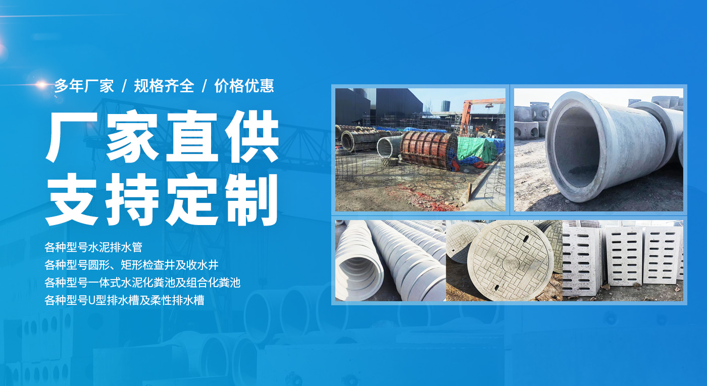 生產(chǎn)Φ300-Φ3000的各種規(guī)格型號(hào)水泥管,沉淀井、各種蓋板、化糞池、排水槽、水泥圍墻等各種水泥制品。